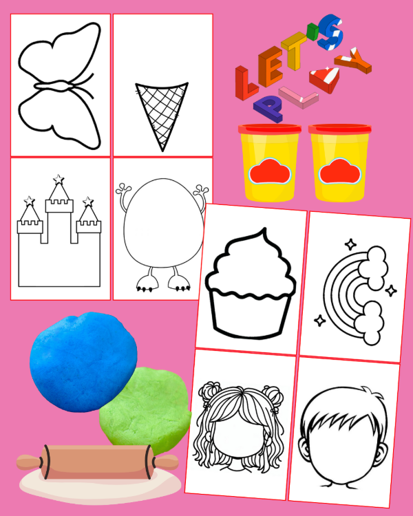 Archivo .pdf para imprimir 8 mini plantillas para plastificar/laminar y jugar con masa sobre ellas