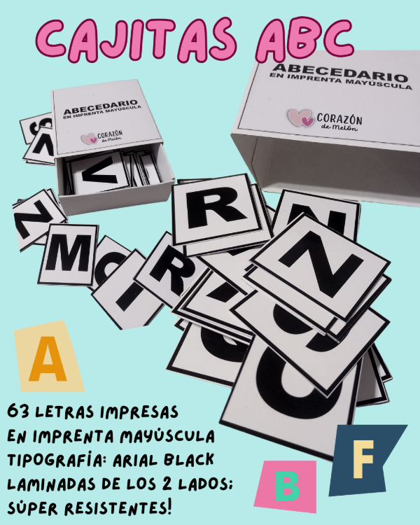 Cada caja incluye 2 abecedarios completos + 5 vocales extras + letras extras (R-S-M-N)